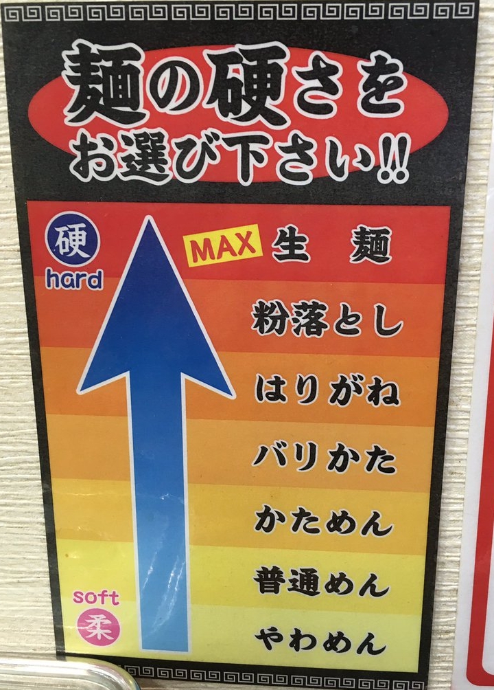 地元福岡で県外の友達がきてラーメン屋さんに行ったときに、とまどう人が多いのが注文時の「麺の硬さはどうされますか?」という質問。慣れている人はそもそも注文で「ラーメン硬麺」などと頼みますが、初めての人などは「え、硬さ? どう答えるの?」と戸惑ってしまうみたいです^^